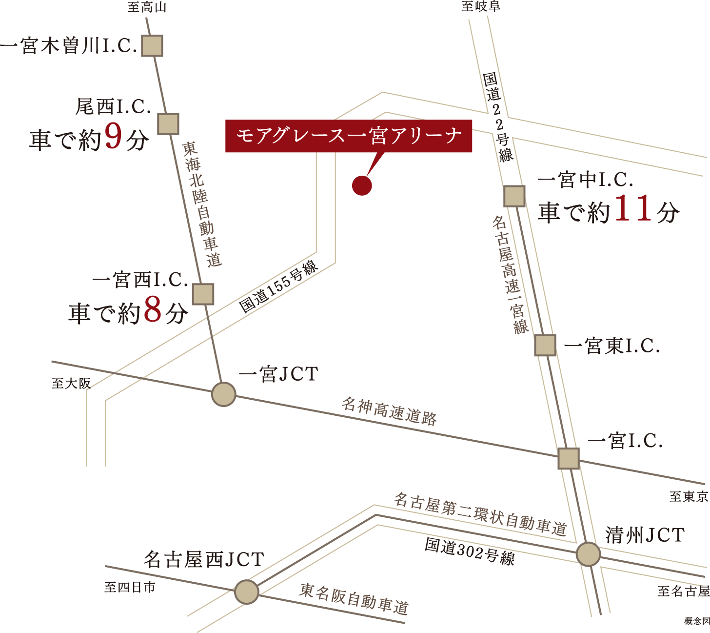 近隣の国道や名古屋高速、