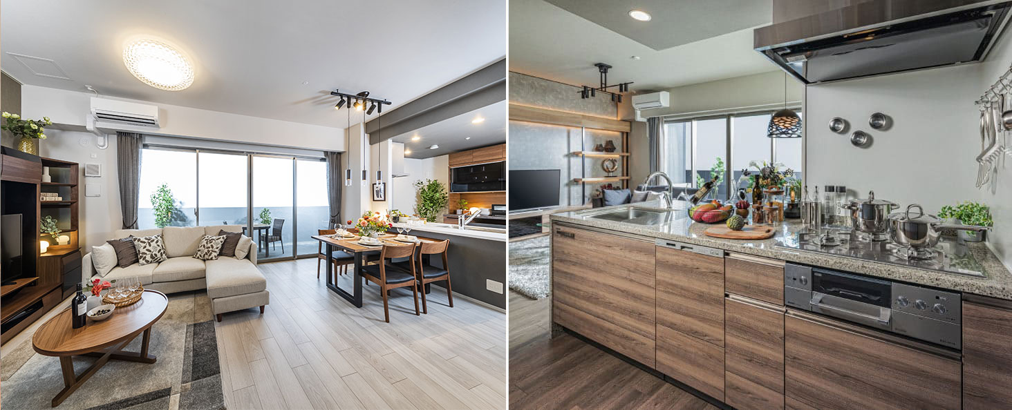 オリジナル造作家具を含めたモデルルームのようなハイグレードな空間など、